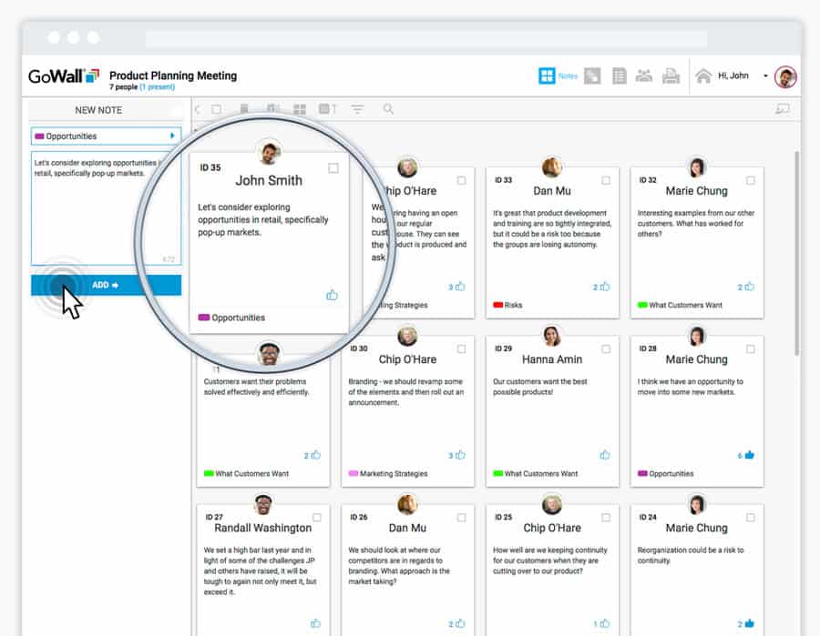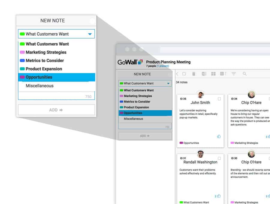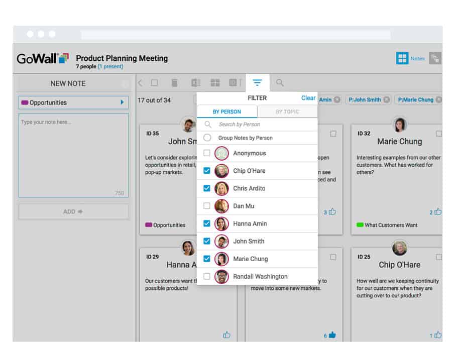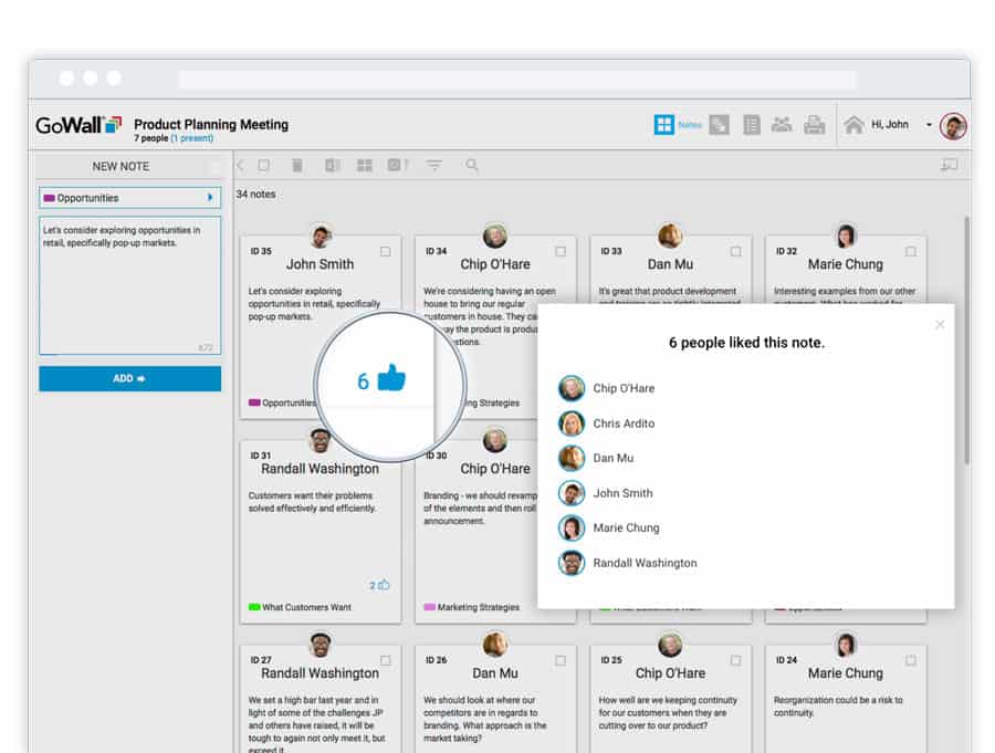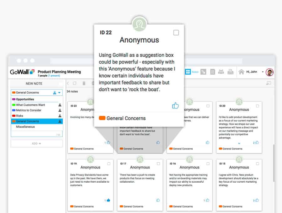 User-friendly Note Walls create participant neutrality and encourage 100% engagement.