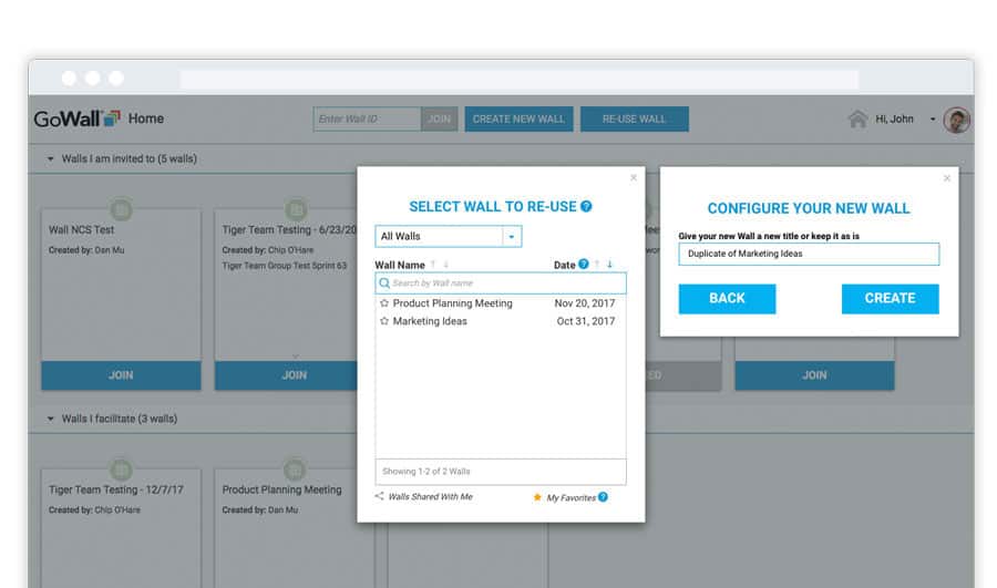 Wall templates can be re-used and shared, saving you valuable time especially when planning meetings on the fly.