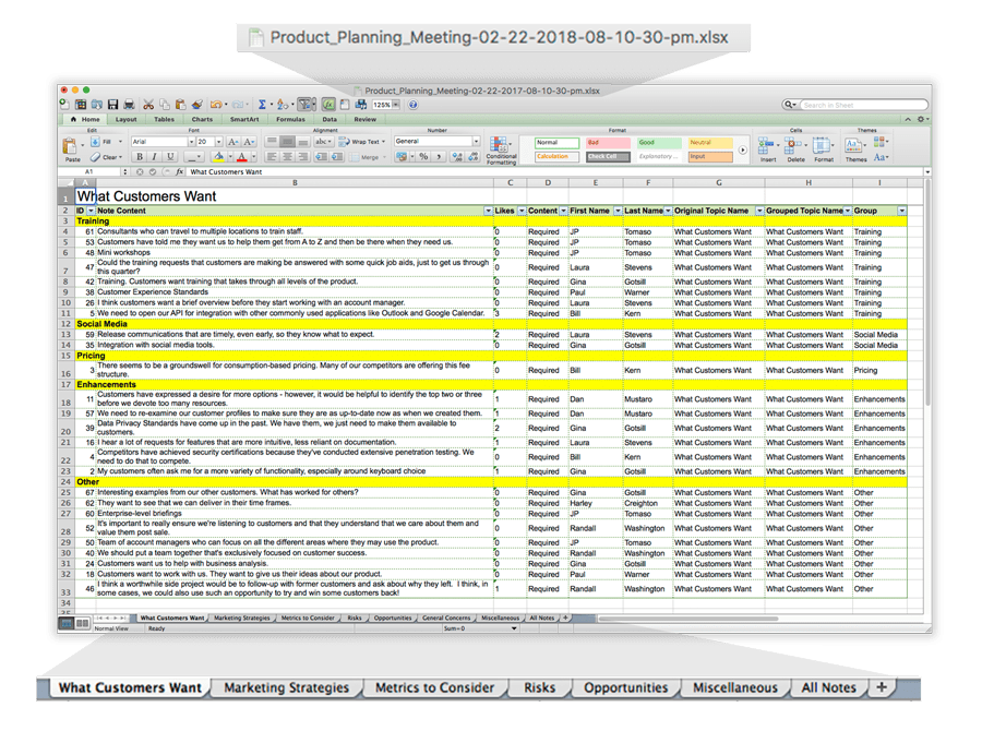 One-click export from the Note Wall or Grouping Screen to Microsoft Excel® and meeting notes are ready to distribute, no transcription required.